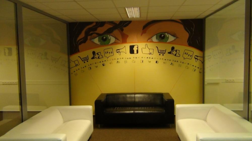 Nástěnná malba v kancelářských prostorách Nezabývám se jen hlínou. Je zde uvedena pro doplnění škály mých realizací