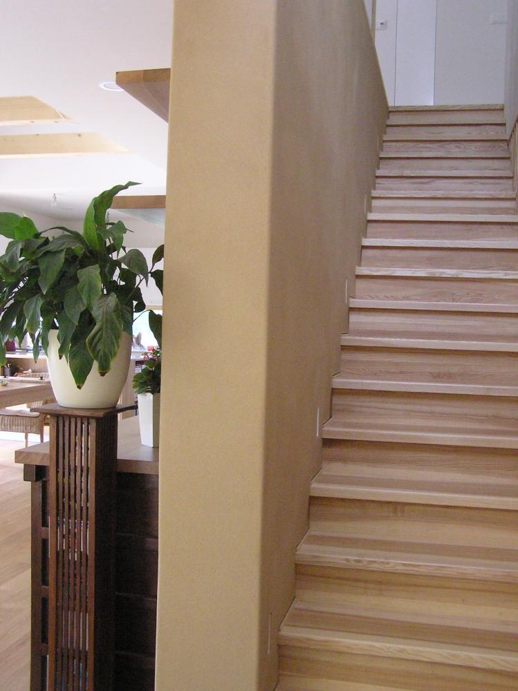 Jedná se o dřevostavbu, ve které se aplikovali hliněné omítky v ložnici, japonské místnosti, schodišti a části OP s krbem. Na dřevěnou konstrukci byly přidělány hliněné panely Lemix. Na tyto hliněné panely se natáhla jemná hliněná omítka Ekonom, do které se zapracovala perlinka. Prelinka zde má zabránit praskání hliněné omítky na spojích mezi jednotlivými hliněnými panely. Po uschnutí první vrstvy hliněné omítky na hliněných panelech se natáhl konečný finální hliněný štuk v hnědé barvě ze série Ekonom.