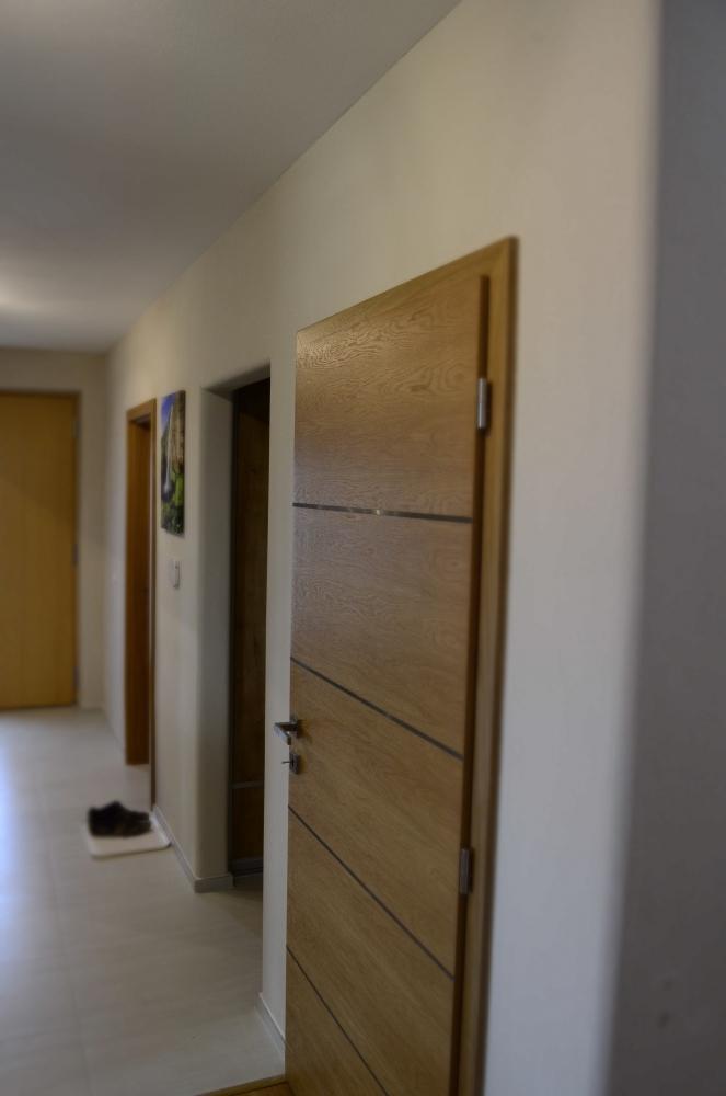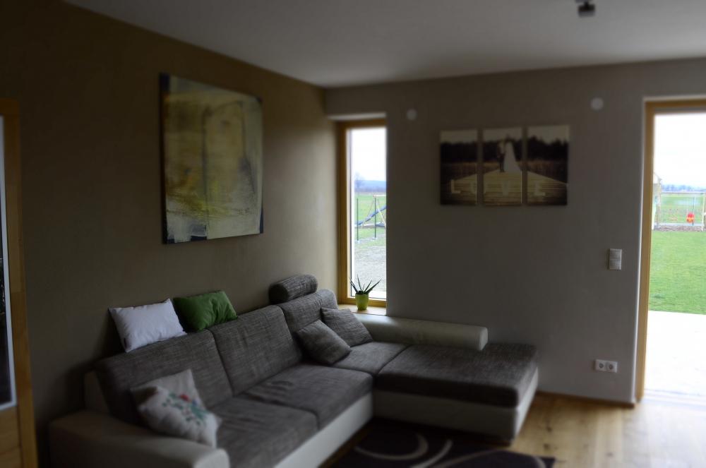 Na této realizaaci v Rakousku byla použita jako základ hrubá hliněná omítka v tloušťce 15mm. Finální hliněný štuk tvoří jemná hliněná omítka hnědá Ekonom a bílá Artová hliněná omítka.
