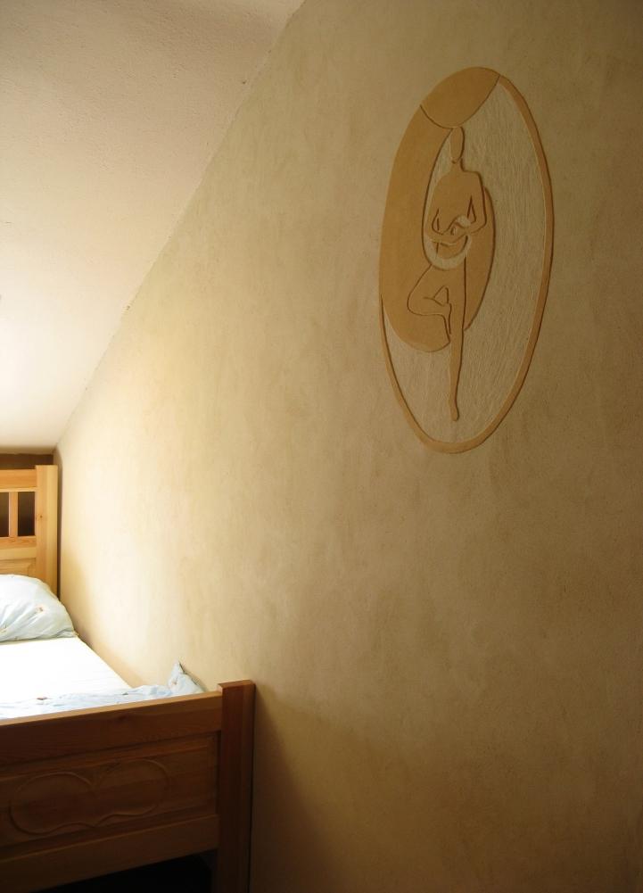 Sgrafita v ubytovací části ekologického vzdělávacího centra Švýcárna (Adamov, Moravský kras). Každý pokoj je jinak tématicky zaměřěn, a tomu odpovídají i motivy sgrafit. K realizaci byly použity dekorativní hliněné omítky Art od firmy Picas. Realizovala: