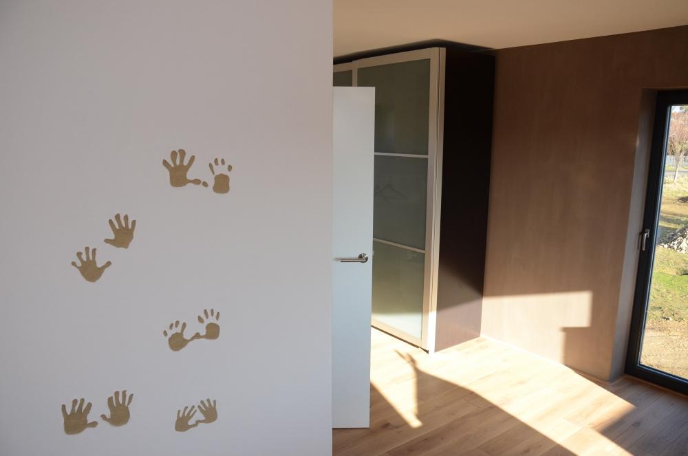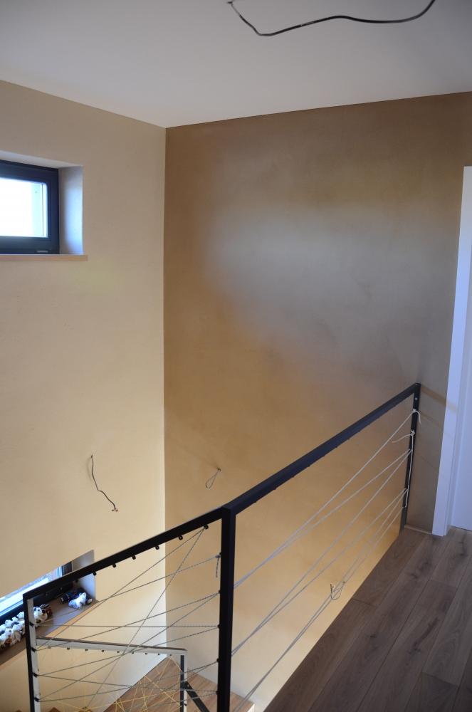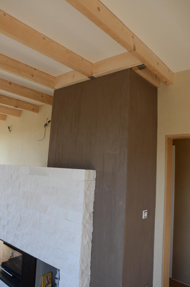 Hlíněná omítka Econom byla provedena v dětském pokoji a na chodbách.Omítka Cottage byla provedena v obývacím pokoji spojeným s kuchyní a na schodišti.Artová omítka byla provedena v ložnici a na komíně u krbu.